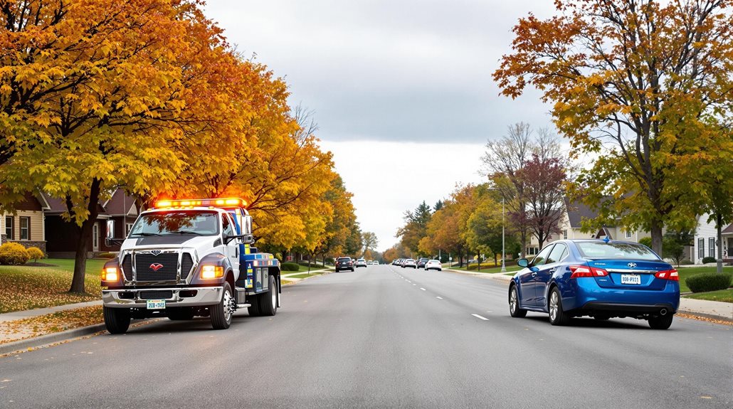 In New Brighton, MN, 24/7 roadside assistance guarantees you're never stranded, offering a thorough suite of services designed to address any vehicular mishap with prompt efficiency and expert care. Whether you require reliable towing with strong and secure equipment, a swift jump-start to breathe life into a drained battery, or fast fuel delivery to get you on your way, skilled operators are poised to assist. Professional flat tire changes minimize your downtime, while safe lockout services grant you vehicle access without incurring high locksmith fees. Engage with this responsive service and experience how it effectively tackles your roadside challenges.